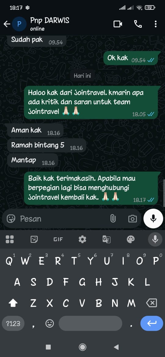 Booking lewat WhatsApp cepat dan responsif. Layanan siap bantu kapan saja.